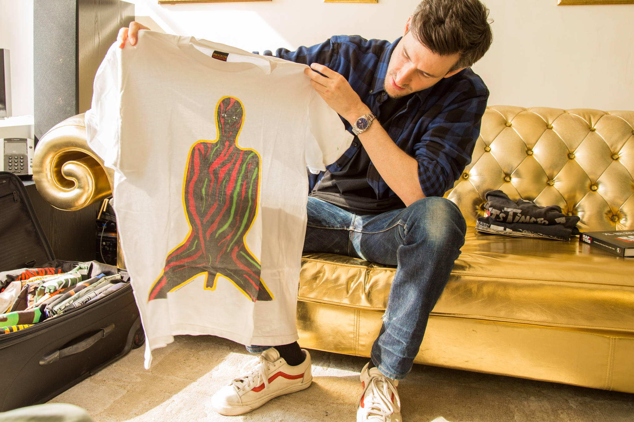 Perched atop the fabled gold couch sitting in Lenny S's office, DJ Ross One is unpacking a huge suitcase that runneth over with rap tees. When looked at in rapid succession, a sensation similar to an acid flashback ensues. And then I realize something: Something about rap music and its culture sucks you in immediately. Almost any rap fan I know can recall the exact moment they heard hip-hop for the first time. And for DJ Ross One—real name Ross Schwartzman—who grew up in Cincinnati, OH, his moment was seeing Yo! MTV Raps for the first time. Just that glimpse hooked him for life, which led him to New York City where he'd become an established DJ within the scene.
